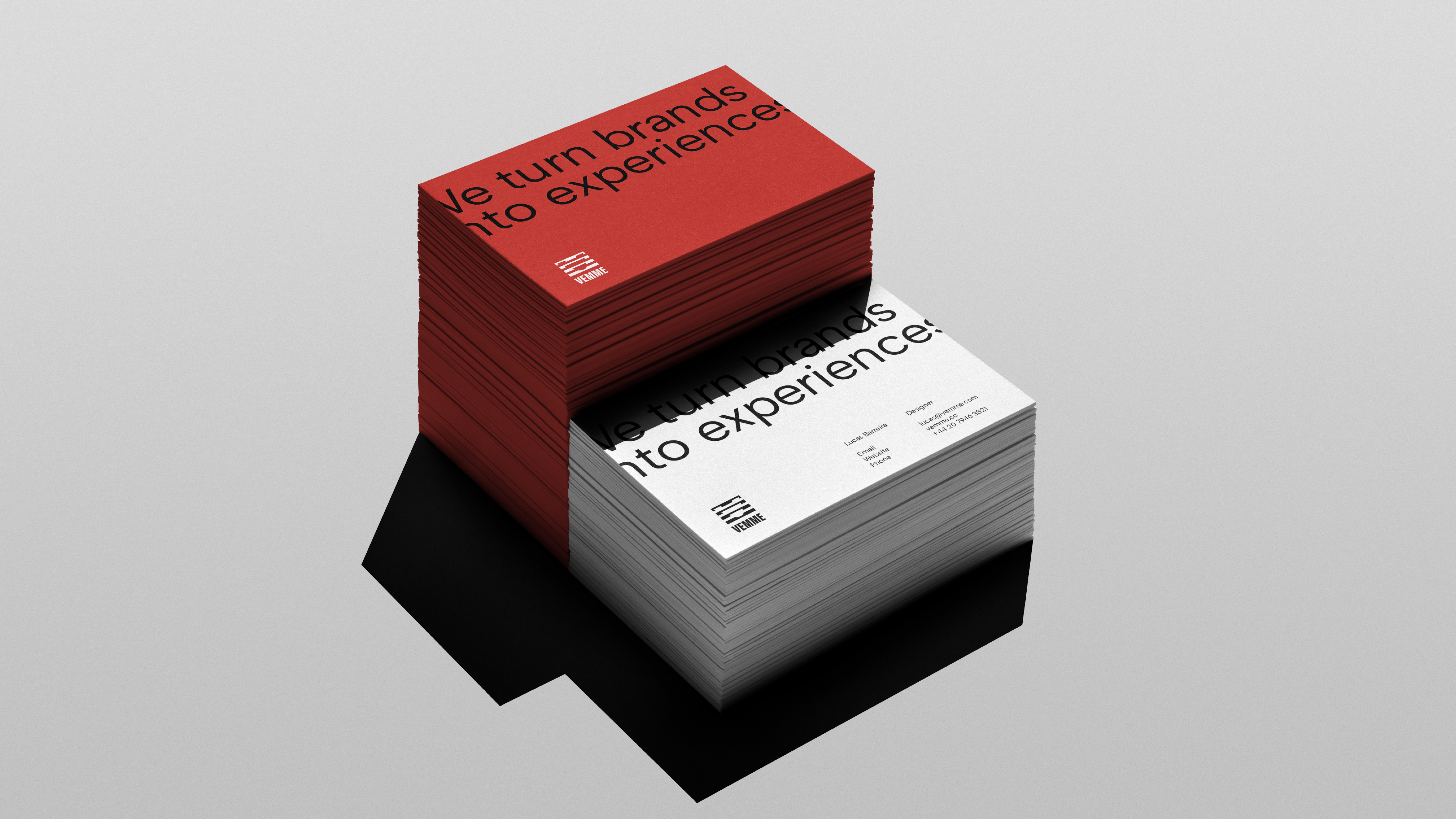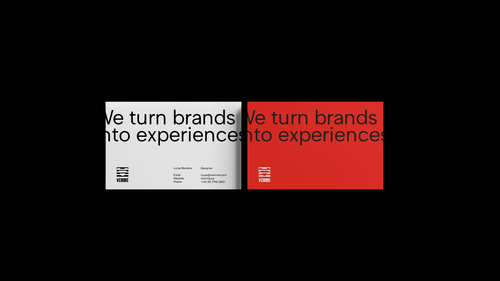 Criada para marcas que não querem apenas existir no mercado, mas ocupar espaço, gerar conexão e criar experiências memoráveis. O slogan “we turn brands into experiences” traduz esse propósito: transformar identidades e narrativas em experiências que permanecem mesmo depois que o conteúdo deixa a tela. O símbolo parte de um “V” em movimento. Barras horizontais sobrepostas criam a sensação de velocidade e ritmo, funcionando como frames visuais. A estrutura modular permite que o logo atue de forma flexível, completo, fragmentado ou aplicado como padrão gráfico, ampliando sua presença nos diferentes pontos de contato da marca.